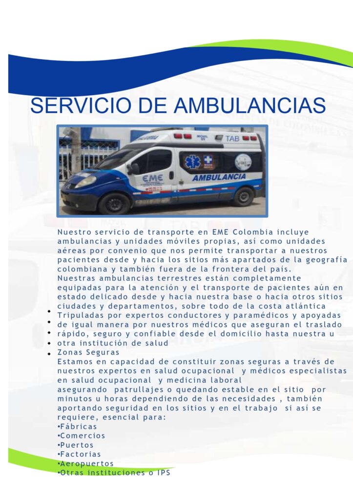 Además, Clínica EME cuenta con transporte puerta a puerta para pacientes que requieran movilización desde y hacia la clínica dentro de Barranquilla, haciendo más fácil y cómoda tu atención.