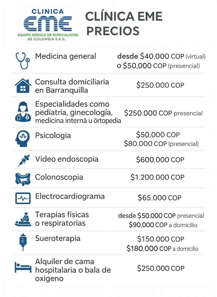 🏥 Clínica EME: Servicios médicos integrales y tarifas claras en Barranquilla