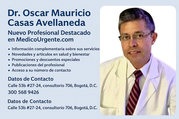 Bienvenidos al perfil del destacado profesional de la salud, el Dr. Oscar Mauricio Casas Avellaneda, médico cirujano con una sólida formación universitaria y especialización en diversas terapias alternativas. Graduado de la Universidad Nacional, su enfoque se centra en la atención clínica con énfasis en la prevención y promoción de la salud en la comunidad.